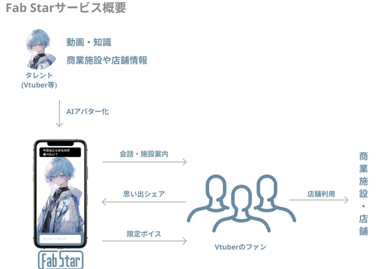 株式会社Blue Lab(代表取締役社長:梅宮 真、以下「Blue Lab」)は、実在するVTuberのAIにより日常すべてを推し活に変えることを目指す「Fab Star」を用いたサービスの実証実験を、横浜のエンターテイメント施設ASOBUILD(アソビル)において開始いたします。