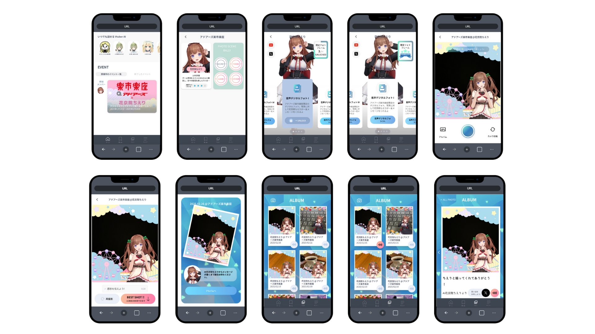 今回のコラボイベントでは、全国6つのアミューズメント施設「アドアーズ」「楽市楽座」において、.LIVE所属「花京院ちえり」とのコラボレーションを実施し、期間限定の特別コンテンツを提供しました。X(旧Twitter)で同施策に関する投稿が合計で約20万インプレッションを記録するなど、ファンの方々を中心に大変な盛り上がりの中で1ヶ月のキャンペーンを終了いたしました。